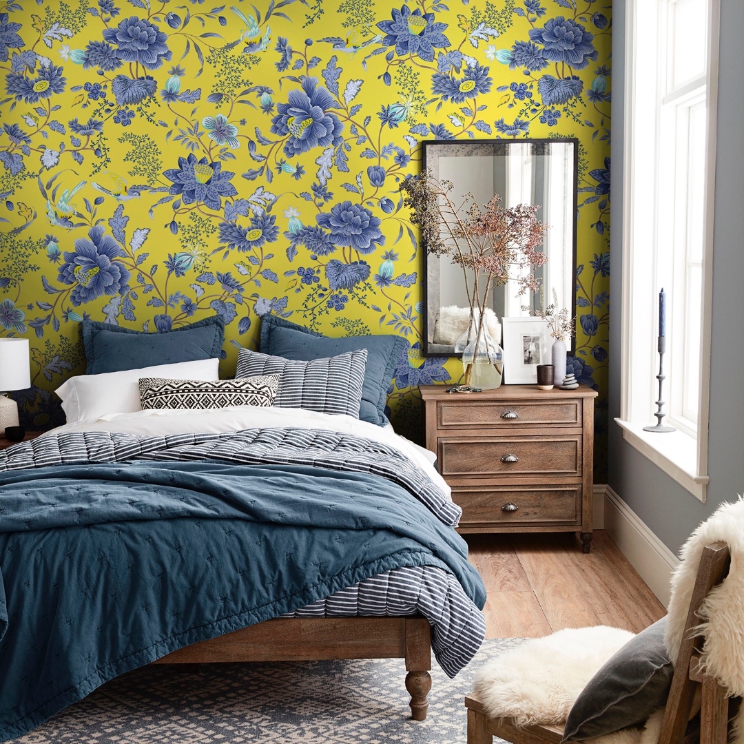 Дизайнерские обои Барвинок желтый коллекция Флора пауэр.