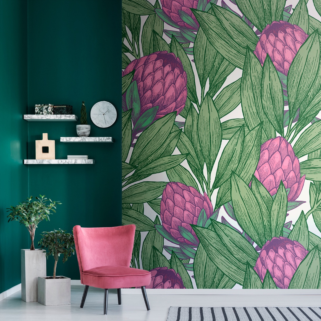 Дизайнерские обои Протея грин коллекция Флора пауэр.