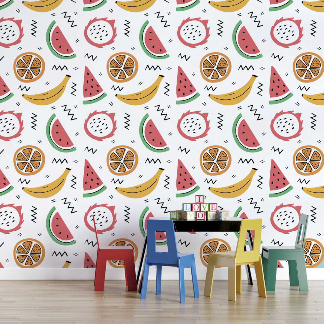 Сочность, свежесть, аромат лета и предвкушение настоящего фруктового счастья. Ощущение будто становишься героем книги Брэдбери "Вино из одуванчиков", бежишь босиком по мягкой зелёной траве и жадно вдыхаешь ароматы яблок, вишни, персиков, арбуза... Обои из этой коллекции способны не только ускорить процесс поедания гостями приготовленных вами блюд в кухне-столовой, но и послужат отличным оформление детской комнаты. Чудесные, лёгкие обои с фруктами создадут непринуждённую атмосферу в любом помещении, а также могут стать частью дизайна уютной кофейни.
