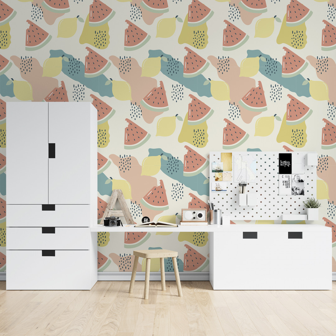 Сочность, свежесть, аромат лета и предвкушение настоящего фруктового счастья. Ощущение будто становишься героем книги Брэдбери "Вино из одуванчиков", бежишь босиком по мягкой зелёной траве и жадно вдыхаешь ароматы яблок, вишни, персиков, арбуза... Обои из этой коллекции способны не только ускорить процесс поедания гостями приготовленных вами блюд в кухне-столовой, но и послужат отличным оформление детской комнаты. Чудесные, лёгкие обои с фруктами создадут непринуждённую атмосферу в любом помещении, а также могут стать частью дизайна уютной кофейни.