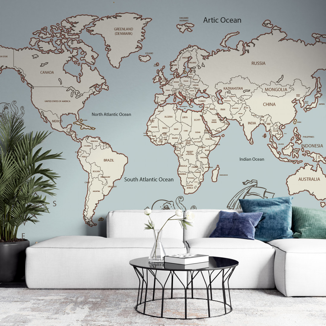 Весь мир на вашей стене. Покажите вашему ребенку карту мира размером с комнату, путешествуйте и совершайте открытия вместе. Обои карты возможно масштабировать под размер вашей стены. С такими обоями весело познавать мир и, кроме того ваш, ребенок теперь точно не перепутает Швецию с Норвегией.