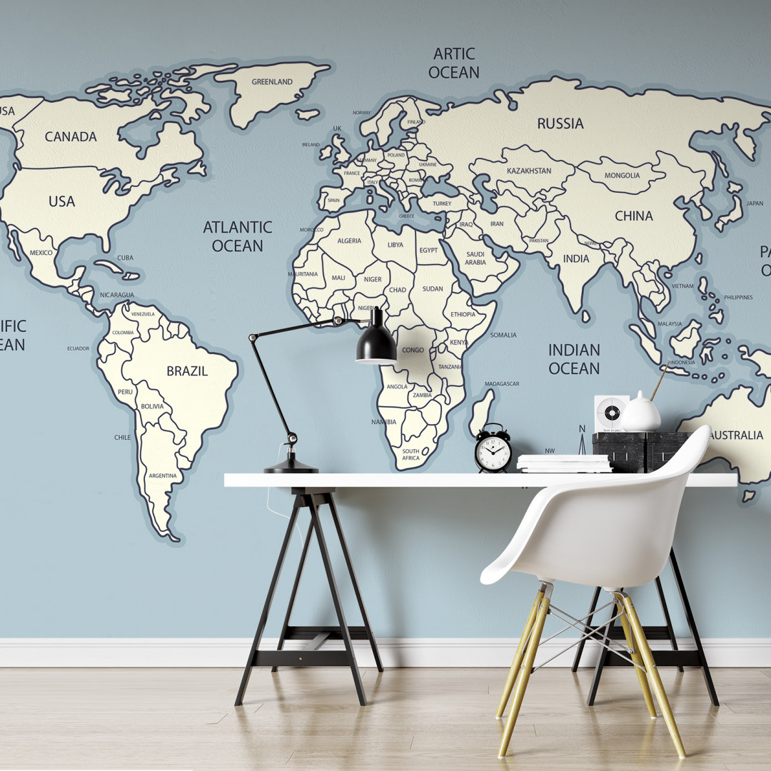 Весь мир на вашей стене. Покажите вашему ребенку карту мира размером с комнату, путешествуйте и совершайте открытия вместе. Обои карты возможно масштабировать под размер вашей стены. С такими обоями весело познавать мир и, кроме того ваш, ребенок теперь точно не перепутает Швецию с Норвегией.