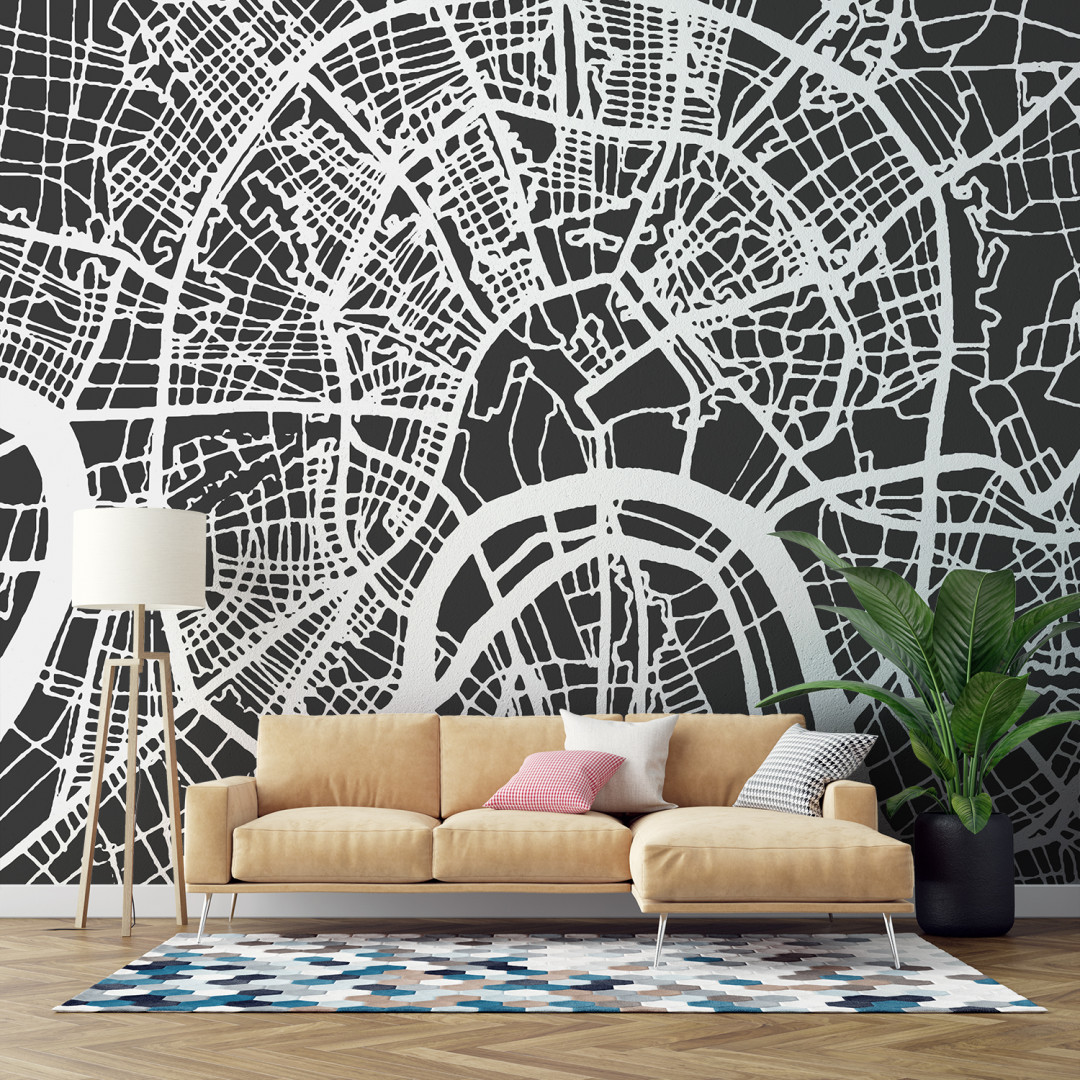 Можно ли использовать карту города в качестве обоев? Мы думаем что да, поэтому представляем коллекцию "Маппинг". В ней вы найдете карты реальных городов, со всеми улицами и кварталами. Карта Москвы или Нью Йорка, Сиднея или Праги, вы можете заказать интересующий вас город и мы с радостью изготовим обои под вашу стену.